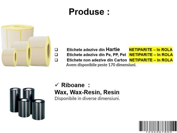 Consumabilele ( Etichete & Riboane ) sunt compatibile cu majoritatea imprimantelor termice & transfer termic: